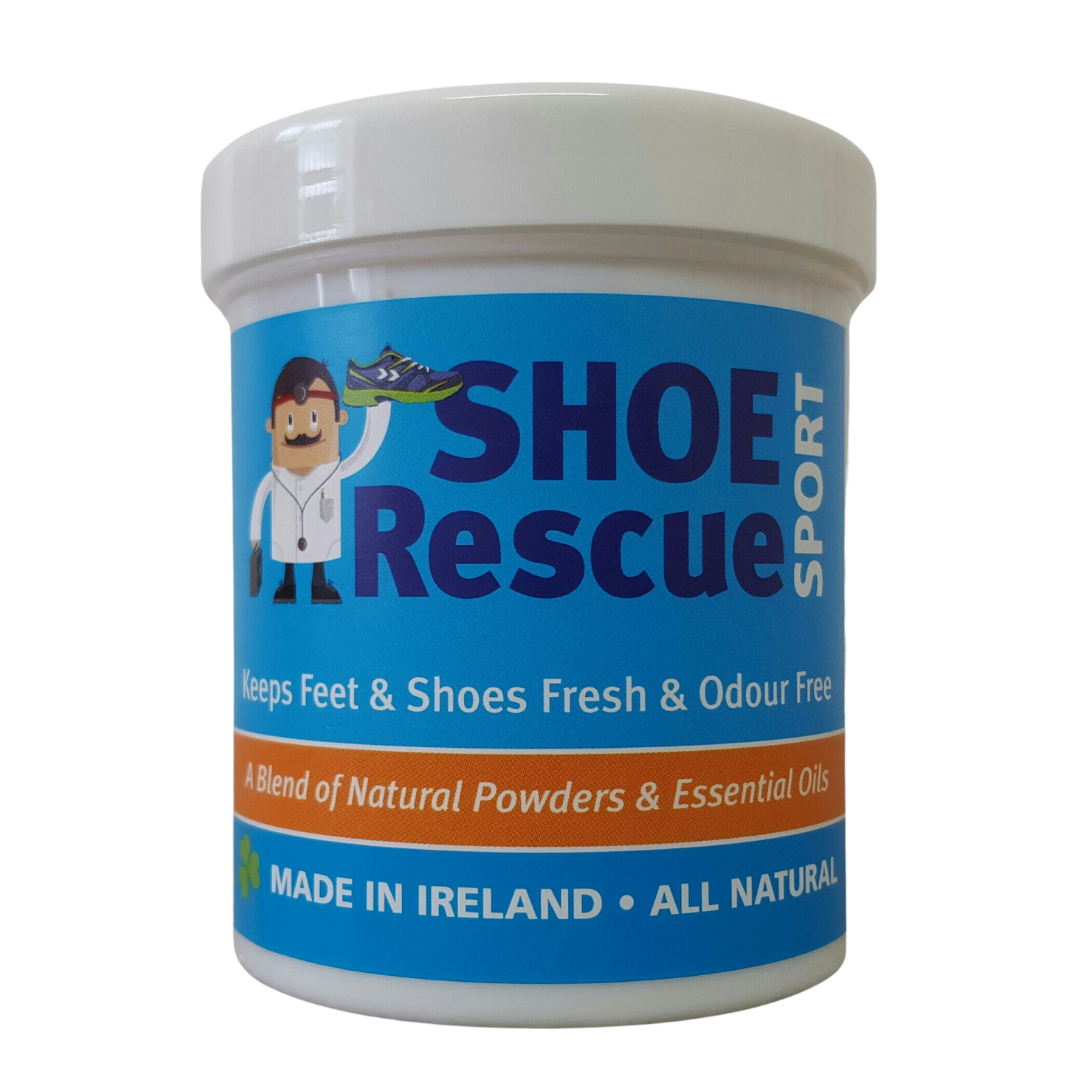 Shoe Rescue, developed by a registered podiatrist, is a unique blend of natural powders infused with essential oils which have therapeutic and anti bacterial properties. Unlike many other products Shoe Rescue doesn’t just mask the odour it’s a remedy.